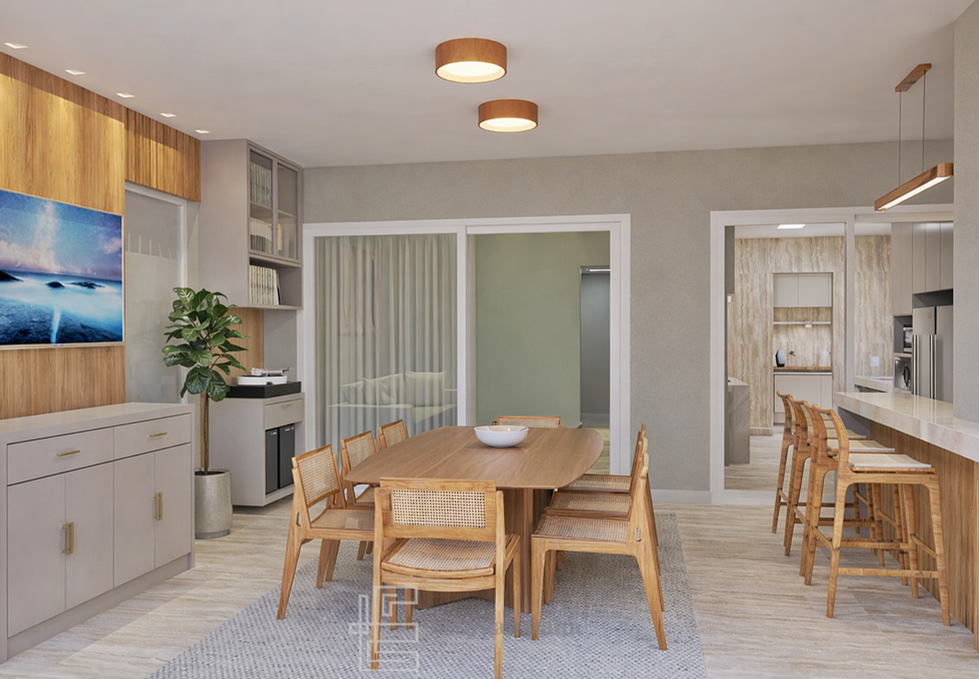 Projeto de interiores completa para residência no Condomínio La Ville – Betim/MG. Um projeto que equilibra estética contemporânea, integração dos espaços e soluções personalizadas, resultando em ambientes elegantes, atemporais e acolhedores.
